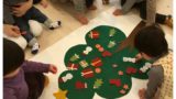 “Ready… go!!” の結果が先程のダッシュ…。1,2歳児は元気いっぱい!0歳児ちゃんたちはママ抱っこで一緒に♪部屋中に貼った8個のマークから、耳で聞いて、探してみましたよ。